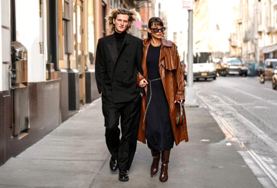 優しいクリームイエローが目を惹くふたりは、ブラックとのコンビネーションがスタイリッシュ。それぞれがメインにしている色を、お互いのアクセントとして使う、まさにペアコーデのお手本といえるスタイリング。