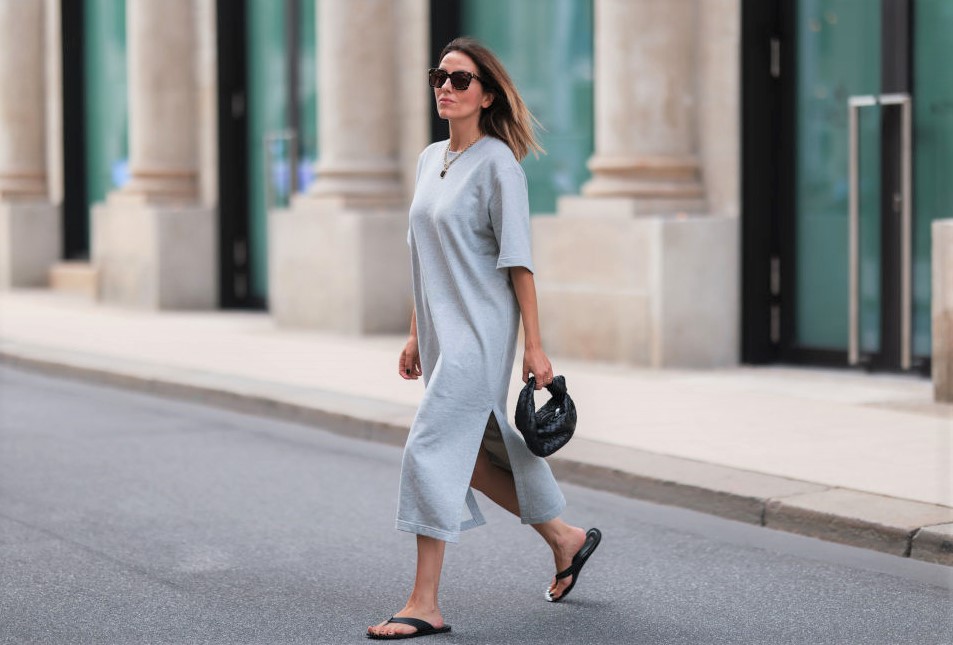 ロング丈のワンピースは、瞬時にスタイルが完成する優秀アイテム。ネックレスをプラスするだけで、ちょっとしたよそいき顔に。ミニバッグとフラットサンダルはブラックで合わせた、色数を抑えた着こなしも「シンプルおしゃれ」を叶えるポイント!