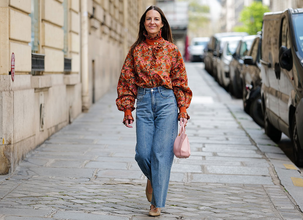 真っ先に楽しみたいのがフェミニンなブラウスとのコーデ。デニムとジレがブラウスの甘さを程よく中和。抜け感のあるスタイルに。