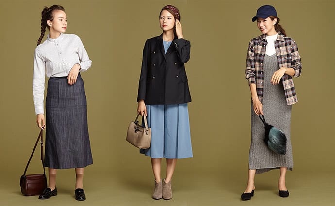 細畝コーデュロイにバーガンディのプリーツスカートで、秋を存分に楽しめる取り合わせ。リラクシーなシルエットで抜け感のある雰囲気づくりを。