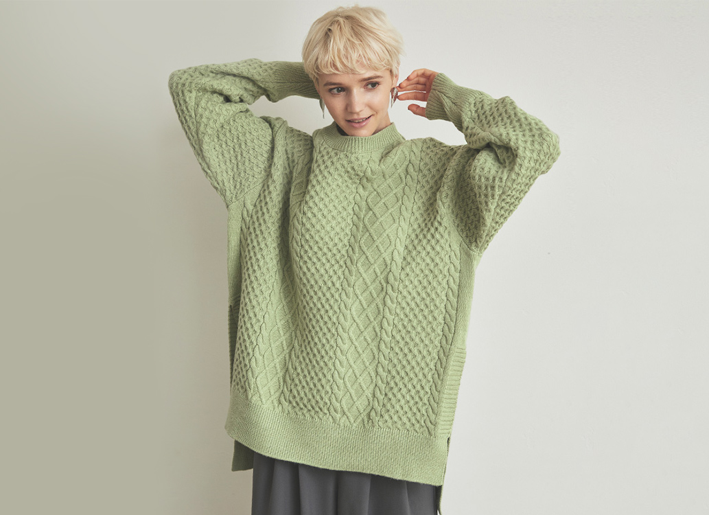 サイドスリットケーブルオーバーニット