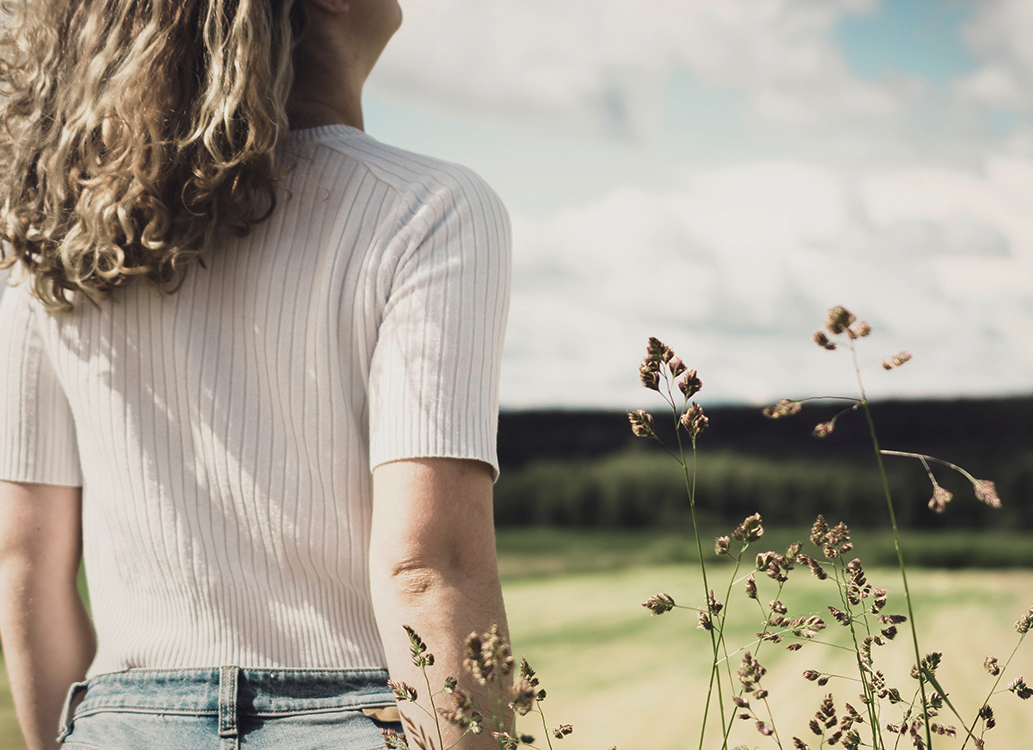 背中を大きく開けてツイストしたバックシャンデザイン。ラフなヴィンテージ風素材でナチュラルなムラ感を表現。