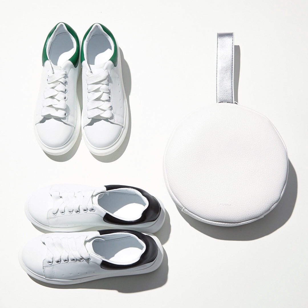 服に色を使う分、シューズやバッグは色のないもので抜け作りをして。