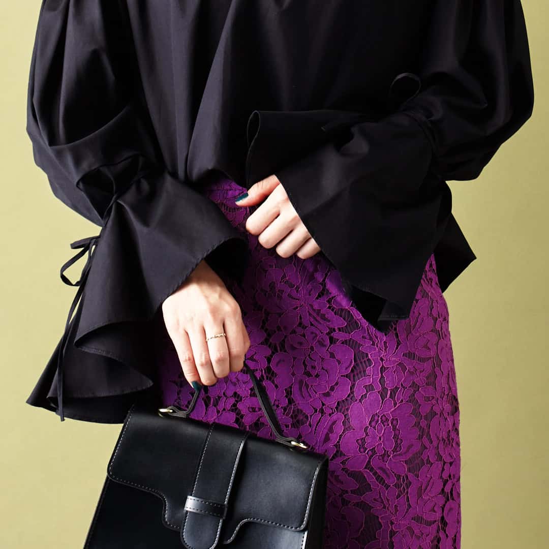 シックな黒がシャープに転換してくれるから、フェミニンが苦手な人でも取り入れやすく、