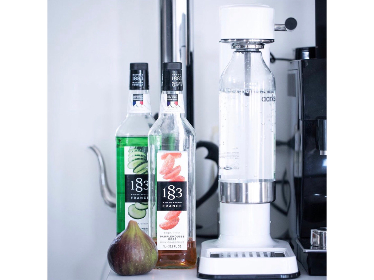 mizukudasai:1883メゾンルータンというフランスのフレーバーシロップをソーダで割って飲んでます。好みのフレーバーにソーダを注ぐだけで、上質なソーダが楽しめます!子供達にはピンクグレープフルーツが人気です。