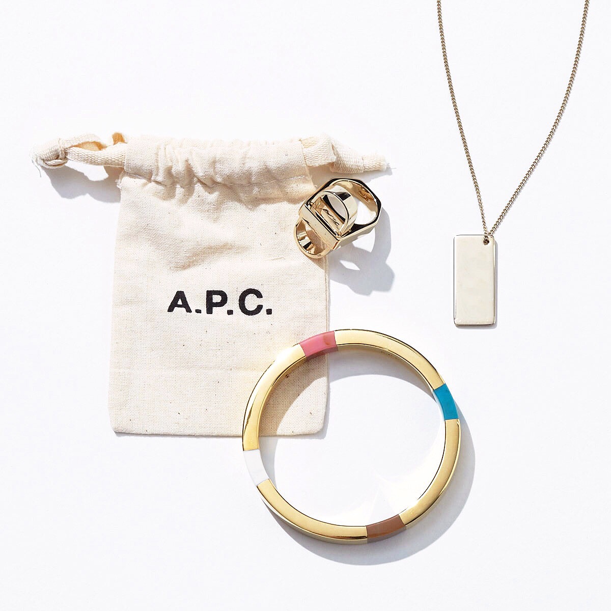 A.P.C.のアクセサリーを身につけて