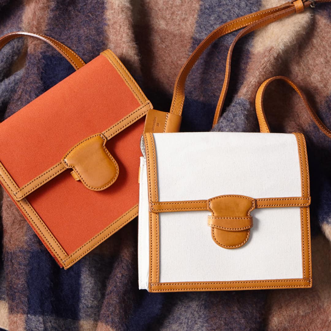 旬なアイテムをセレクト。スクエアのフォルムが愛らしいポシェットはオレンジとオフホワイトの2色展開。