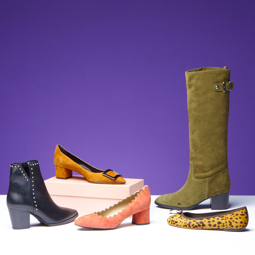 落ち着いたカラーや太めヒールで旬の重め足元を提案します。