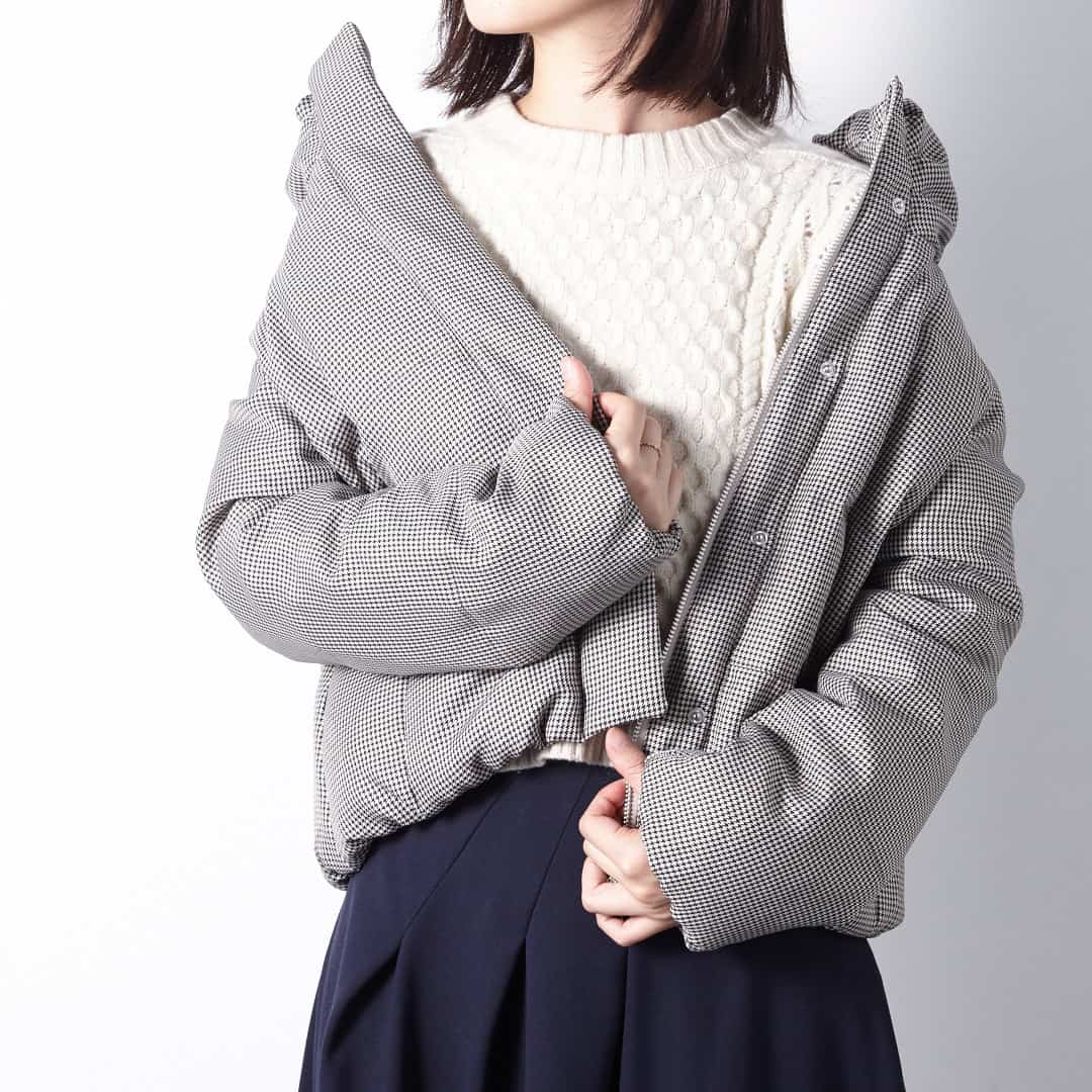 着膨れが気になるダウンはショート丈を選んで上半身をコンパクトにバランスよくまとめて女性らしさをキープ。