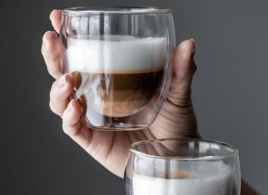 ダブルウォール(耐熱ガラスの二重構造)によって飲み物と空気の間に空間があり、その空間によって冷たい飲みものを入れても結露しにくく、温かい飲みものを入れてもそのまま持てるという使いやすさが人気の理由です。