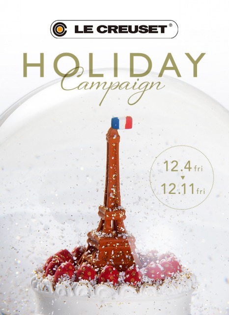 「スノードーム」は、「マルミット」の台座の上に「ラウンド・プレート」、そしてエッフェル塔をのせたクリスマスケーキのデザインがキュートなル・クルーゼの限定品です。