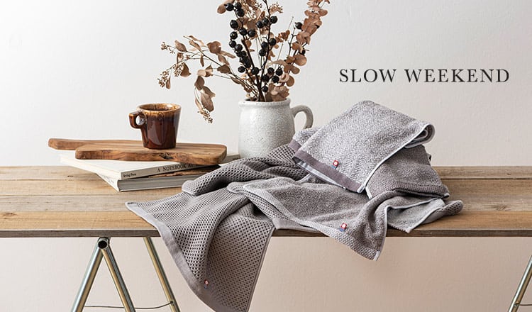 日々の暮らしを心地よくしてくれるタオルを提案。ゆったりと過ごす週末のように、シンプルだけど上質でリラックスできる素材感が魅力です。