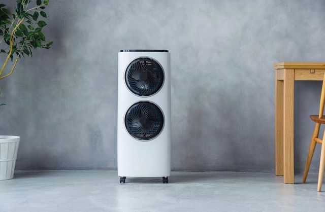 縦に並んだブラックのツインファンは斬新で独創的な存在感があり、お部屋をスタイリッシュに仕上げてくれます。白を基調としたモノトーンカラー、縦長のフォルムは洗練された大人の雰囲気です。