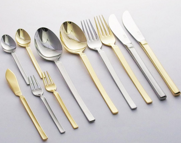 デザインの特徴は、飾りを最小限におさえたシンプルなフォルムが特徴で、多様な食器にも合わせやすくテーブルを優美に演出します。ステンレスとゴールドの2色の組み合わせでより際立ちます。
