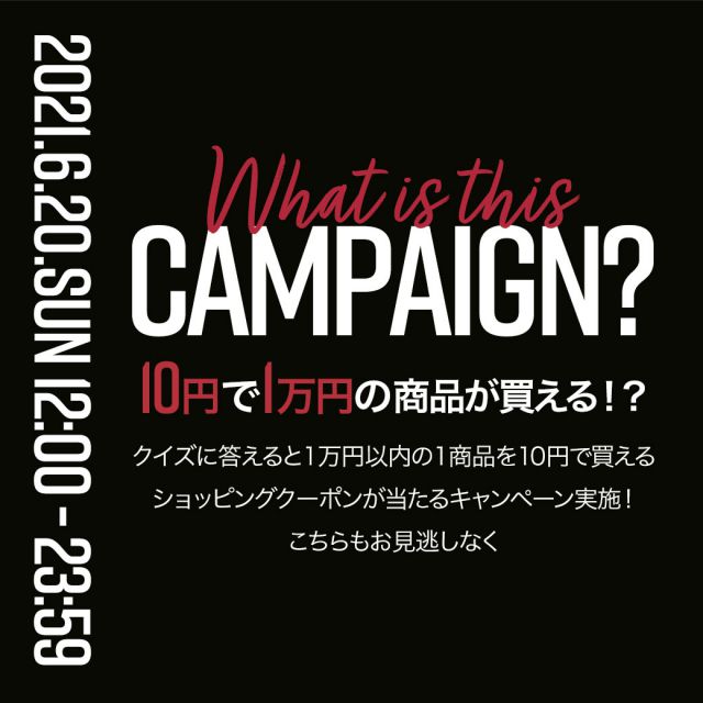 キャンペーン開始と同時に始まるクイズに答えると、正解した方の中から抽選で50名様に1万円以内の1商品を「10円」で購入できるショッピングクーポンをプレゼント!